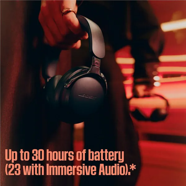 *Testing conducted by Bose with active noise cancelling on and audio playback at a loudness of 75 dBSPL. Battery life varies based on settings and usage.