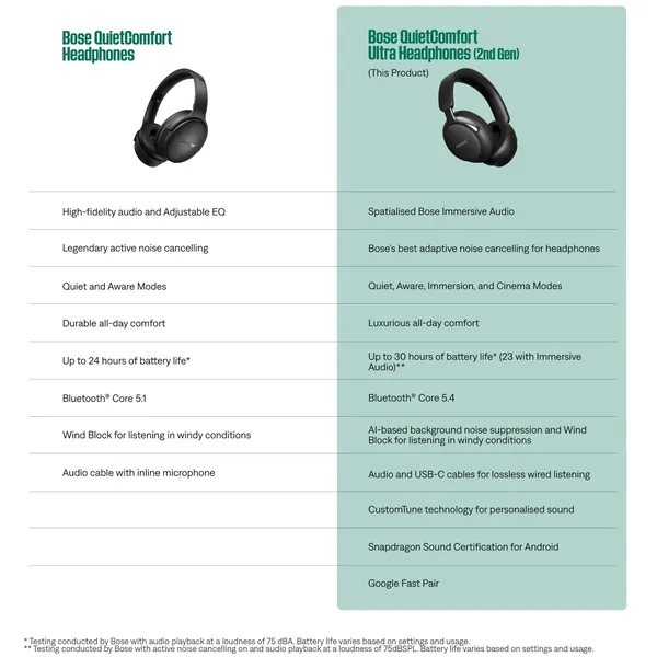 Bose’s best noise cancellation for headphones with spatialised audio for more immersive listening – no matter the content or source. Premium design and luxe materials for unrivalled comfort so you can sink deeper into your favourite songs and sounds.