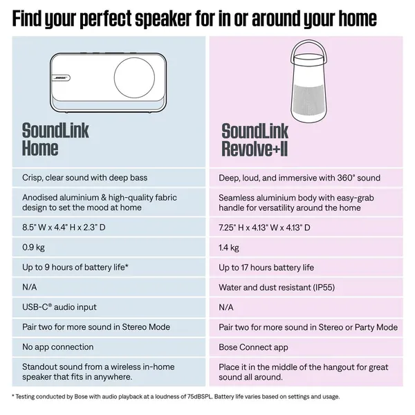 Your place feels more like you with the Bose SoundLink Home Speaker. Go all out or kick back with standout sound from a size that fits in, while chic touches add a premium feel and sleek good looks. It’s wireless, too, so any room can match your musical mood.