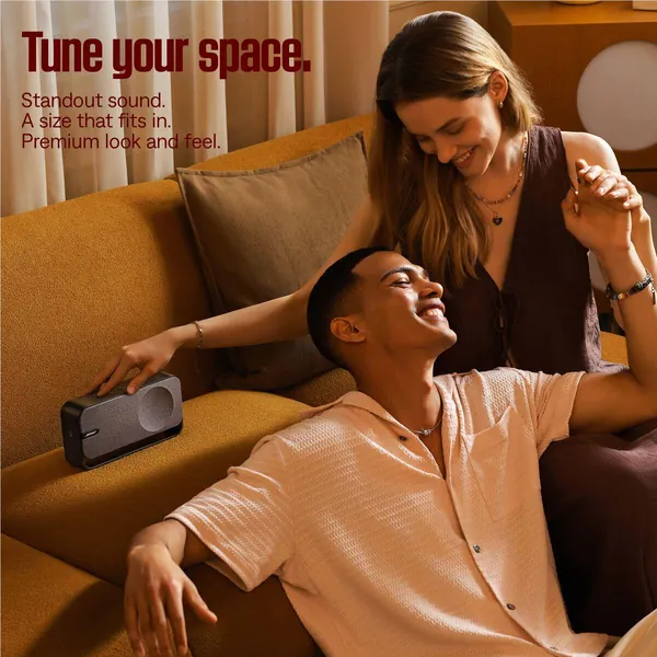 Crisp, clear, and with enough deep bass to fill your space. But it never has to stay in one place. Advanced Bluetooth 5.3 and up to 9 hours of battery life1 keep good vibes going when you take tunes from the bedroom to the kitchen and back. No matter where it is, the speaker adds a splash of style with touches like anodized aluminium and a fabric grille that also add to its premium feel. There’s flexibility with how you listen, too, with USB-C audio input so you can connect to even more sources.