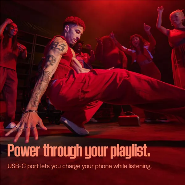 * Using Bluetooth A2DP audio at 65% volume and between 68°F–77°F (20°C–25°C), with default EQ using a mix of Top 50 Global tracks as of October 2023 and no charging of external devices. Battery performance varies with individual user conditions such as audio content, loudness and environmental temperature.