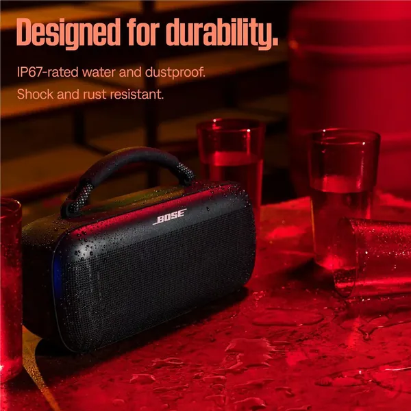 The Bose SoundLink Max Big Wireless Speaker is the ultimate party starter. When you’ve got the playlist and the swag, it’s your time to turn up the vibe. Press play for extraordinary sound that pops the party off and deep bass you can feel in your body and all around you.