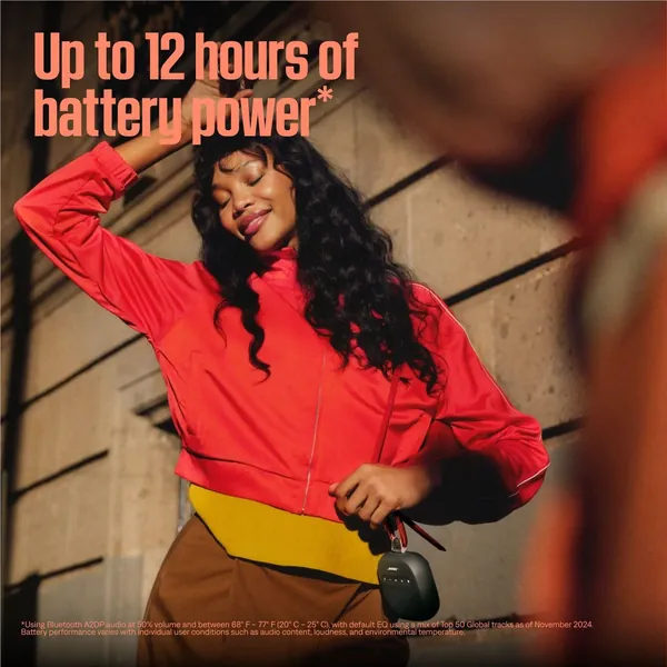 2 Using Bluetooth A2DP audio at 50% volume and between 20° C – 25° C (68° F – 77° F), with default EQ using a mix of Top 50 Global tracks as of November 2024. Battery performance varies with individual user conditions, such as audio content, loudness and environmental temperature.