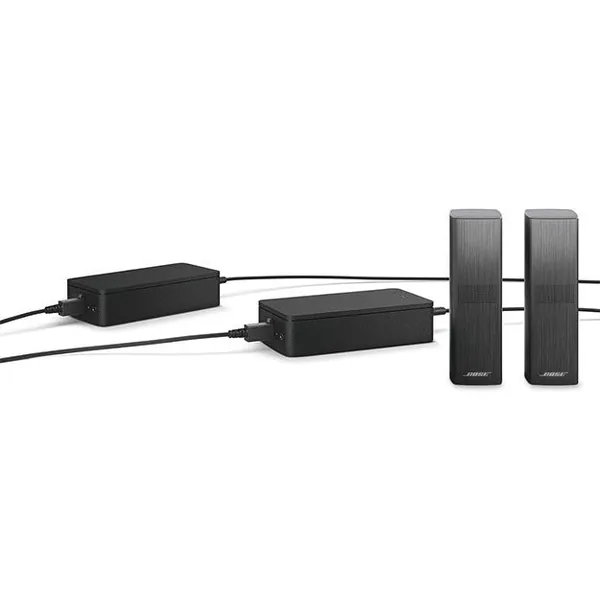 - Simply plug the adapters into a power source and wirelessly connect the receivers to the Bose Soundbar and enjoy your entertainment in minutes