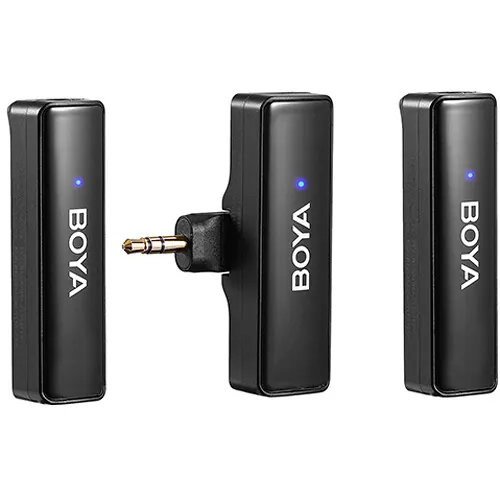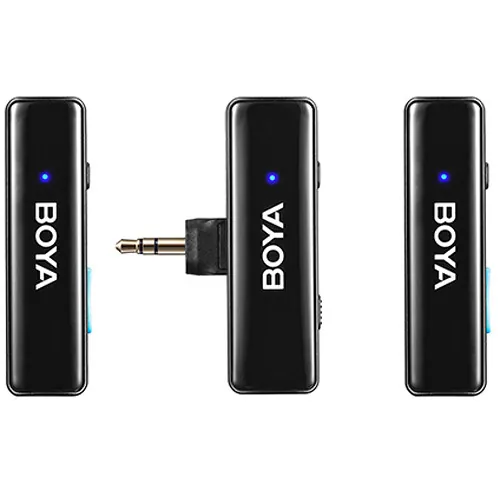The BOYA BOYALINK 2-Person All-in-One Wireless Microphone System allows you to record vlogs or interviews with two subjects with a wide array of devices thanks to the included, interchangeable adapters. A 3.5mm TRS connector, USB-C connector, and Lightning connector can be easily attached to the dual-channel receiver's output contact slot. The system includes two clip-on transmitters with built-in omnidirectional microphones to facilitate clear audio recordings from up to 328' away. LED indicators on the components allows you to monitor battery life and signal strength. The system also includes a furry windscreen, USB-C charging cable, and a charging case to store and recharge the components when depleted.
