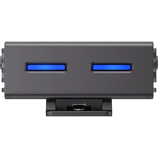 The receiver features a cold shoe mount and 3.5mm TRS output for connection to a compatible camera. If you want to record directly to your smartphone, use the included USB-C adapter to make the receiver a plug-in module for iOS and Android devices. Tri-color LED indicators show connection status, noise cancellation, and volume level.