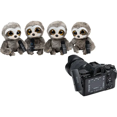 Capture audio in your next four-person vlog for YouTube or Tiktok livestream with your compatible camera or smartphone using this BY-V4 Ultracompact 4-Person Wireless Microphone System from BOYA. The system includes four ultracompact clip-on transmitters with built-in omnidirectional microphones and a four-channel, plug-in receiver with a 3.5mm TRS connector, which inserts directly into your device. Attach the transmitters to your talent's lapel and record audio for social media. All of the components can communicate from up to 656.2' away via 2.4 GHz frequency.