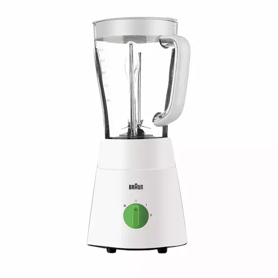 Braun PowerBlend 1 Jug Blender 500W, 1.5 L Capacity, TriAction Technology, 2 Speeds + Ice crush/pulse function. 2 Mill for grinding & chopping, Plastic - JB 0123 4-BLADE SYSTEM: Thanks to the advanced 4-blade chopping system, you can achieve excellent blending results in a remarkably short time. ADJUSTABLE SPEEDS WITH ICE CRUSH FUNCTION: Take control of your blending experience with up to 2 speeds, allowing you to choose the perfect setting for your desired consistency. POWERFUL 500W MOTOR: Experience the benefits of a powerful 500W motor that operates silently while maintaining a compact design. Rest assured of its reliable performance for all your blending needs. VERSATILE ATTACHMENTS: The Braun Jug Blender JB 0123 comes with two convenient attachments: the Multi Mill and Grinder Mill. Expand your culinary possibilities by effortlessly grinding herbs, spices, nuts, and more. 1.5 L CAPACITY: With a generous 1.5 L capacity, this blender allows you to prepare large batches of your favorite beverages or soups, making it perfect for family gatherings or entertaining guests.