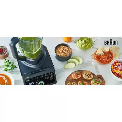 TRI-ACTION TECHNOLOGY Blends all types of food. Thanks to the triangular jug, there are no blind spots and the ingredients are returned faster to the mixing area TEXTURE CONTROL Exclusive technology. Select one of 6 automated programs and choose from one of 3 texture settings - fluid, medium or coarse - to create 18 possible blends 10 SPEED + PULSE Intuitive and easy to use. With the Pulse button and 10 manual speed settings, preparing your daily recipes is easy 1600W MOTOR Innovative blender technology is supported by 1600 Watts of high power, to accurately blend even the toughest consistency ingredients PRECISION EDGE BLADES Sharp premium stainless steel blades forged in Solingen, Germany. They emulsify even the toughest ingredients like ice or root vegetables Costumisable textures. High-Performance blending. Smooth, medium, or coarse. Choose your texture preference between the 18 possible blends in 3 effortless steps. Step 1) select 1 food program, Step 2) select 1 texture, Step 3) press start. PrecisionEdge blade PrecisionEdge blade Expertly engineered and made in Solingen, Germany for optimized performance. The 2in1 blade consists of a straight one to crush hard ingredients in seconds and a curved one to cut fibres, seeds and dry fruits into a smooth texture.