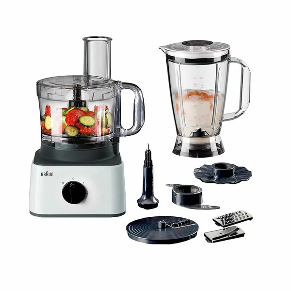 The Braun Food Processor FP0132WH is a versatile 8-in-1 kitchen powerhouse designed to simplify your food preparation. With 750W of power and a range of functions, it handles everything from chopping and slicing to blending and dough kneading with efficiency and ease.