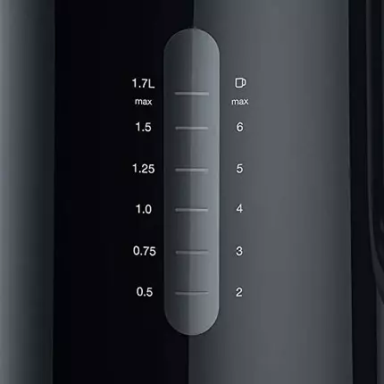 Capacity: 1.7 l BPA free (parts in contact with food): yes Housing: Plastic Power: 2200 Integrated power cord storage: yes Color: White Easy filling system The wide front opening allows easier and direct filling from the tap. 4-way protection Automatic shut-off when the temperature is reached, when the kettle is empty or is removed from its base and guaranteed extra stability up to a 15 ° inclination. Rapid heating system Bring water to a boil in just 45 seconds * with the rapid boil system. * for 200 ml of water. Features 2200W Powerful Motor The 2200W heating element allows for rapid boiling, so you can enjoy your hot drinks quickly and easily. One-Cup Indicator To heat as little as one cup’s worth at a time, saving energy and water. Fast Boiling System Get your water boiled in only 45 seconds* with the fast boiling system. *for 200 ml water 4-Way Protection Auto-off when the temperature is reached, when the kettle is empty or removed from its base and extra stability granted up to 15° inclination. Large Water Window Large water window provides more visibility and clarity on the water level. Anti-Scale Filter Removable and washable, for a great cup of tea at all times. Easy Filing System The wide front opening enables easier and direct filling from the tap. BPA Free All parts that are intended to be in contact with food/drink are BPA free.