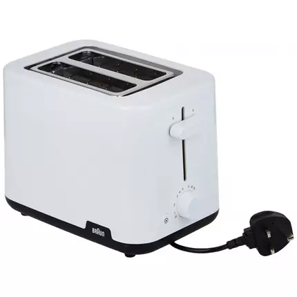 The breakfast 1 toaster is just what you need to make your favourite crispy toast. The easy-to-use Breakfast 1 series two-slot toaster gives you the flexibility to choose your preferred level of browning. The removable crumb tray makes it easy to clean as well. Bun warmer Easily warm or toast large bread rolls and pastries with this practical removable attachment. 8 Browning settings With 8 different settings you can choose your preferred degree of browning, no matter what type of bread. Bread high-lift Easily remove even small slices of bread thanks to Braun high-lift system. Auto-centering system Makes sure your bread is always in the ideal position, for even browning results. Intelligent heat control Enjoy consistent browning results over multiple toasting cycles, thanks to Braun intelligent heat control system. 3-in-1 browning knob 3 great functions, one easy-to-use knob. Reheat, Defrost and Bun Warming can be controlled via a single conveniently located knob. Removable crumb tray The crumbs are collected in the tray and can easily be disposed. 4-way protection Anti-jam safety system, cool walls safe to touch, auto-shut off and extra stability granted up to 10° inclination. Defrost: Yes Cancel: Yes Browning settings: 8 Reheat: Yes Sandwich function: No Bagel function: No Removable crumb tray: Yes Intelligent heat control: Yes Comfort lift: Yes Bread auto centering system: Yes Safety / protection: 4-way Control panel location: Side