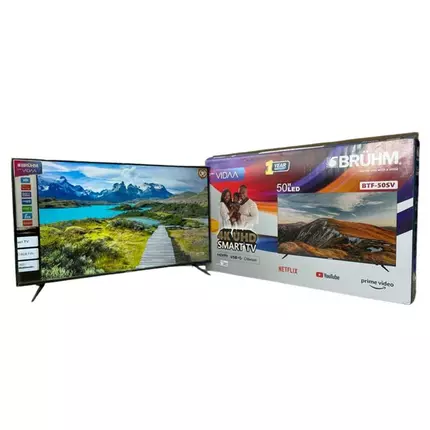 Bruhm BTF-50SV smart OS TV is slim & incorporates great aesthetic design. It looks beautiful from any angle and fits perfectly into your living room. Enjoy its vivid picture and dynamic sound in HD resolution. This LED Digital TV delivers better color, quality and sound to enhance entertainment. Featuring slim designs, stunning colors, plus a wide range of options, Bruhm smart televisions offer a whole new way to experience your favorite movies, sports, TV shows. You would definitely love the stunning picture when it comes on and marvel at its appearance when turned off.Its sleek, elegant design will appeal to even the most refined sense of style. Bring your favorite movies, music and pictures to a big screen with this unique smart television. It has USB ports which allows you to share all your content with friends and family. Clear audio and video is just a HDMI cable away and you can enjoy pure entertainment source from a laptop or a HDMI capable media device. Specifications: Model No.- BTF-50SV Size – 50 Inch Narrow bezel, Frameless High gloss, simple shape Thunder Sound UHD smart Vidaa TV 50″-BTF-50SV Vidaa smart OS Easy use & quick response Remote with hot keys Metal frame Thunder sound with premium build-in sound bar Dolby audio 3*HDMI/2*USB Dolby audio Box speaker Free wall bracket Resolution (HD/FHD/UHD) – UHD Type – Vidaa smart OS Signal resource – T2/S2 Voltage/frequency – V/Hz – 100-240V/50/60Hz Unit size (W*D*H) without stand – 1245×83×766 mm Net weight – 12 KG Gross weight – 16 KG Certificate approval – CB