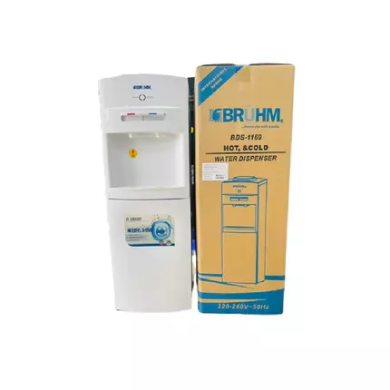 Bruhm Water Dispenser 2 Taps with Storage Cabinet White/Black BDS-1169 Bruhm BDS-1169 is easy to use, efficient and durable too. The hot and cold water dispenser is designed with world class safety features. It is safe to use in the home, office and larger spaces too. It also comes with an auto temperature control and high power stainless steel hot water tank. The model of freestanding water dispenser come with faucet design to supply hot and cold drinking water, and also has a double safety device for preventing overheat. The High power stainless steel hot water tank allows the water stay hot as well as its high efficiency compressor cooling. The hot water faucet of BRUHM freestanding water dispenser is designed with safety lock to prevent children from scalding. Features: Floor Standing Hot & Cold Water SUS304 Food grade stainless steel water tank High efficiency compressor cooling system Anti-bacterial material Over-heat protection Anti-overflow design Fast heating and cooling Anti–leakage water system Specifications: Heating Capacity: 5.0L/Hour Cooling Capacity: 2.0L/Hour Stainless Steel 550W Heating 100W Cooling Compressor Cooling Hot & Cold Without Fridge, With Normal Cabinet Weight: 15kg Warranty: 1 Year
