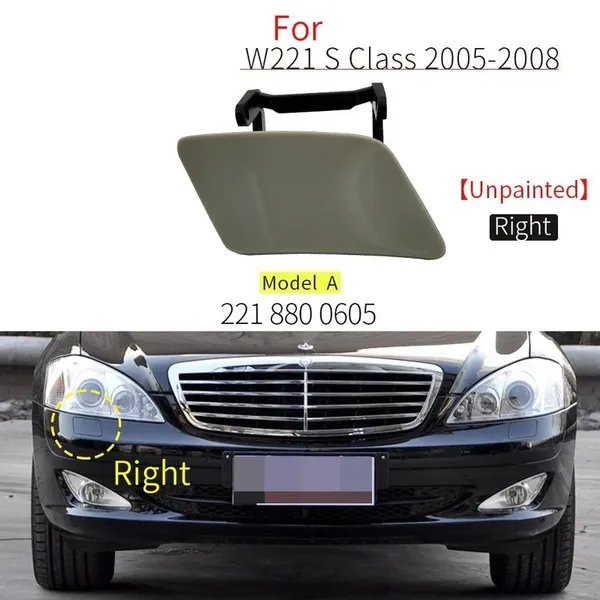 COMPATIBLE WITH MERCEDES BENZ S CLASS W221 2005-2008 CAR BUMPER HEADLIGHT HEADLAMP WASHER NOZZLE COVER CAP 2218800605 RIGHT A