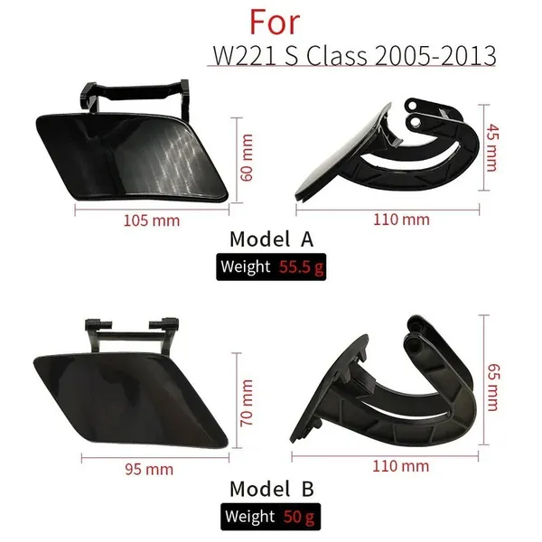 Bumper Headlight Headlamp Washer Nozzle Cover Cap 2218801405 Right B CC-6769 Compatible With Mercedes Benz S Class W221 Lci 2009-2013