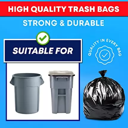 • TEAR AND LEAK RESISTANT: 1.5 mil thick plastic, No need to double bag your trash - our extra large trash bags are crafted from durable strong enough to carry both indoor and outdoor trash without leaking or tearing.