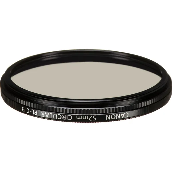 Useful for minimizing reflections and glare and enhancing the overall color and tonal saturation is the 52mm Circular Polarizing Filter from Canon. By filtering out light that has become polarized due to reflection from a non-metallic surface, this filter helps to produce a noticeable increase in saturation of skies and foliage, as well as clearer imagery when photographing in hazy conditions. A circular polarizer differs from a linear polarizer in that it supports full use of a camera's autofocus and auto-exposure functions.