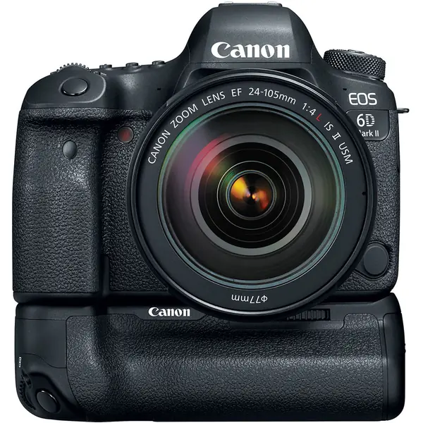 Enjoy longer shooting times and improved control in portrait orientation with the Canon BG-E21 Battery Grip for your EOS 6D Mark II DSLR. Able to hold up to two LP-E6/LP-E6N lithium-ion battery packs, this grip will effectively double your shooting time. Also, it features vertically-positioned controls, including a shutter release button, that will provide comfortable, intuitive operation. The battery grip has a durable construction to match that of the 6D Mark II and is both dust- and water-resistant. Additionally, it features a camera alignment pin hole for use with certain video heads and quick release plates.