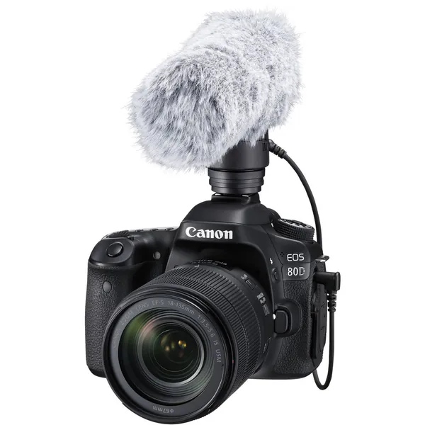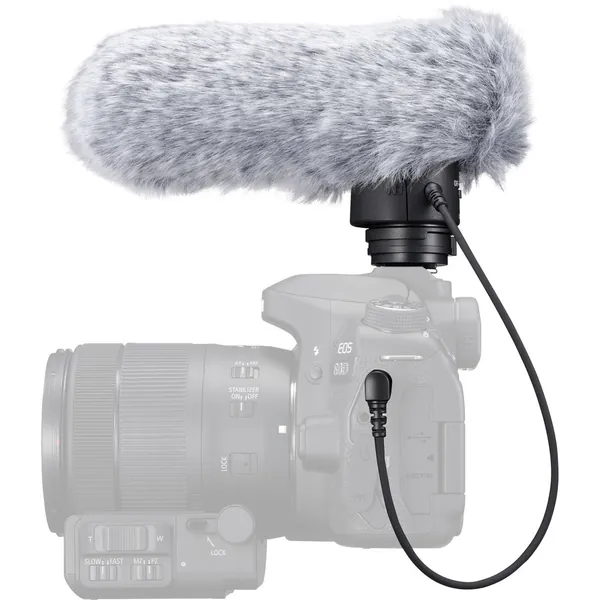 Helping to enhance audio quality when recording video with your digital camera, the DM-E1 Directional Microphone from Canon is an external microphone offering a range of directional control, including a dedicated shotgun setting as well as switchable 90° and 120° stereo settings. It is compatible with digital cameras featuring a 3.5mm plug and offers a frequency response range of 50 Hz to 16 kHz. An included wind screen helps to reduce peripheral sound from wind or other ambient noises, and a shock mount is incorporated into the design to reduce camera and lens operation noise while recording. It is powered by an included CR2032 button-type lithium cell battery, and a power status indicator lamp lets you confirm the remaining life of the battery.