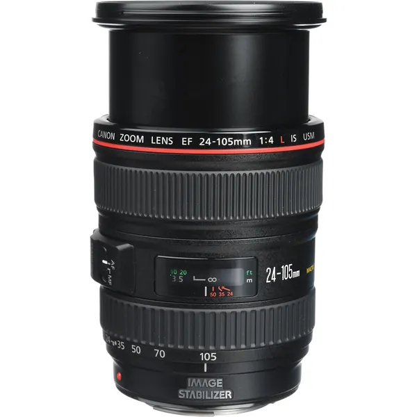 A versatile one-lens solution for many shooting situations, the EF 24-105mm f/4L IS USM Lens is a Canon L-series zoom spanning a useful wide-angle to short-telephoto range and featuring a constant f/4 maximum aperture. Complementing the flexible design is an advanced optical layout that includes one Super UD element, which reduces color fringing and chromatic aberrations in order to realize a high degree of color accuracy and clarity. Three aspherical elements are also featured, and minimize distortion and spherical aberrations for improved sharpness. Additionally, a Super Spectra coating has been applied to individual elements to control flare and ghosting for high contrast and neutral color fidelity.