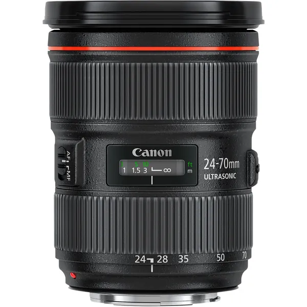 Spanning a popular and versatile range of focal lengths, the EF 24-70mm f/2.8L II USM is a Canon L-series zoom commonly thought of as the workhorse of lenses. Ranging from wide-angle to portrait length, this lens is also distinguished by its constant f/2.8 maximum aperture to benefit working in difficult lighting conditions and to afford greater control over depth of field. The lens is also characterized by its sophisticated optical design, which includes one Super UD element and two UD elements, which reduce color fringing and chromatic aberrations in order to realize a high degree of color accuracy and clarity. Three aspherical elements are also featured, and minimize distortion and spherical aberrations for improved sharpness. Additionally, a Super Spectra coating has been applied to individual elements to control flare and ghosting for high contrast and neutral color fidelity.