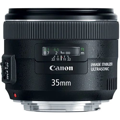 A flexible wide-angle prime, the EF 35mm f/2 IS USM from Canon pairs the versatile focal length with sophisticated autofocus capabilities as well as image stabilization. The bright f/2 maximum aperture benefits working in difficult lighting conditions and also affords greater control over depth of field for isolating subject matter. The optical design utilizes one aspherical element to reduce spherical aberrations and distortion for high sharpness, and a Super Spectra coating has also been applied to suppress flare and ghosting for increased contrast and color accuracy. Benefitting the optical assets is a four-stop-effective Image Stabilizer, which minimizes the appearance of camera shake for sharper handheld images. Also, a ring-type USM realizes quick, quiet, and smooth autofocus performance along with full-time manual focus override.