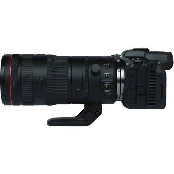 Enhanced image stabilization is achieved through coordinated control when Canon's RF lenses with optical IS are combined with the EOS R5 C camera's electronic IS when shooting XF-AVC or MP4 formats. With an RF lens that has optical IS and the electronic IS in the EOS R5 C camera, coordinated control helps achieve the optimum hand-shake correction effects. This helps achieve better anti-vibration performance than with conventional IS-equipped EF lenses (using optional Mount Adapter EF-EOS R) and electronic IS together.