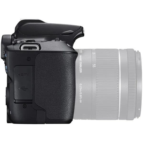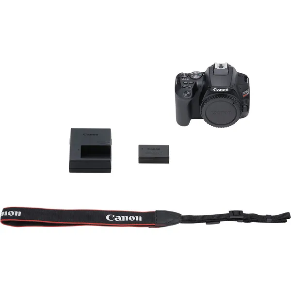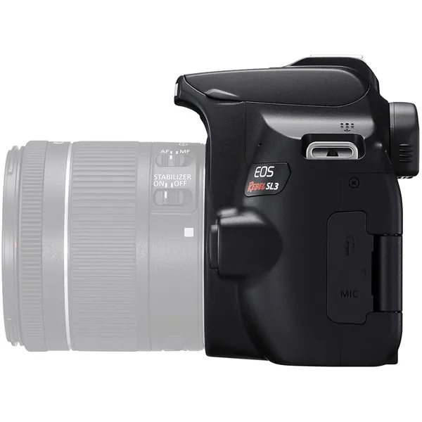Defined by its notably sleek form factor, the black Canon EOS Rebel SL3 is a versatile DSLR offering an ideal mix of stills and video capabilities. Featuring a 24.1MP APS-C-format CMOS sensor and DIGIC 8 image processor, high-resolution stills and UHD 4K video recording are possible, along with a wide ISO 100-25600 sensitivity range to suit working in a variety of lighting conditions. In-camera 4K time-lapse movie creation is also possible for creatively depicting subjects over time. Benefitting the imaging attributes, the sensor's design also facilitates Dual Pixel CMOS AF, which uses phase-detection autofocus for quick, accurate, and smooth focusing performance when recording movies or shooting stills in live view. When shooting stills using the optical viewfinder, a 9-point phase-detection system is used for quick and accurate focusing in a variety of shooting scenarios.