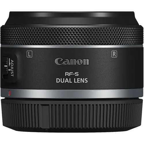 Driving the RF-S 7.8mm f/4 STM Dual VR lens is a gear-type stepping motor (STM) with a dual-lens autofocus mechanism, which drives the left and right lenses quickly, quietly, and in unison. This makes autofocus as simple to operate as it is with an ordinary lens. Available for both photo and video, the electronic focusing/control ring and the left-right focus difference adjustment switch allow the option to control focus on both lenses or the left lens only. The lens is compatible with Canon's Dual Pixel CMOS AF autofocus system, and full-time manual focus is also supported.