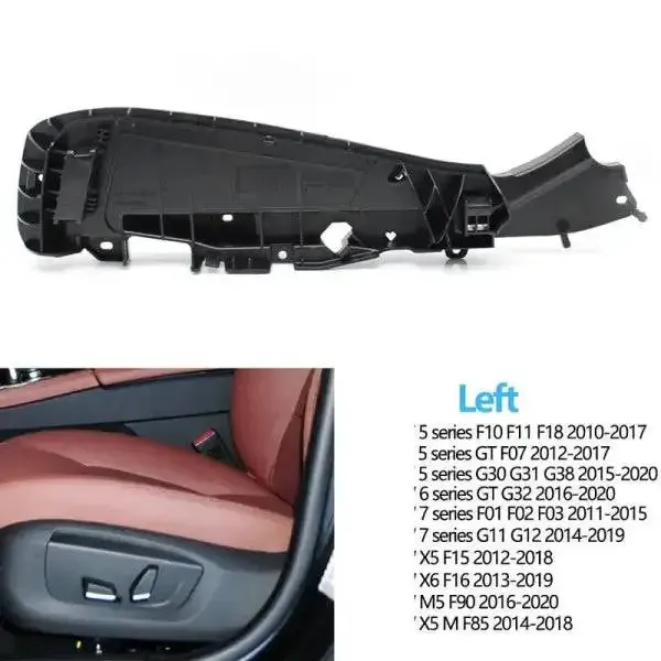 COMPATIBLE WITH BMW 5 SERIES F10 G30 GT F07 10-23 6 SERIES GT G32 16-20 7 SERIES F01 F02 09-22 X5 F15 X6 F16 13-19 CAR SEAT SIDE BRACKET PLASTIC COVER TRAY FRONT LEFT 52107317459