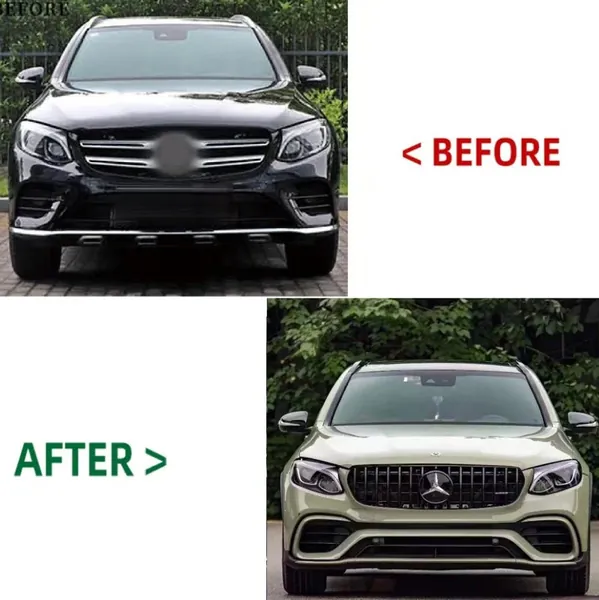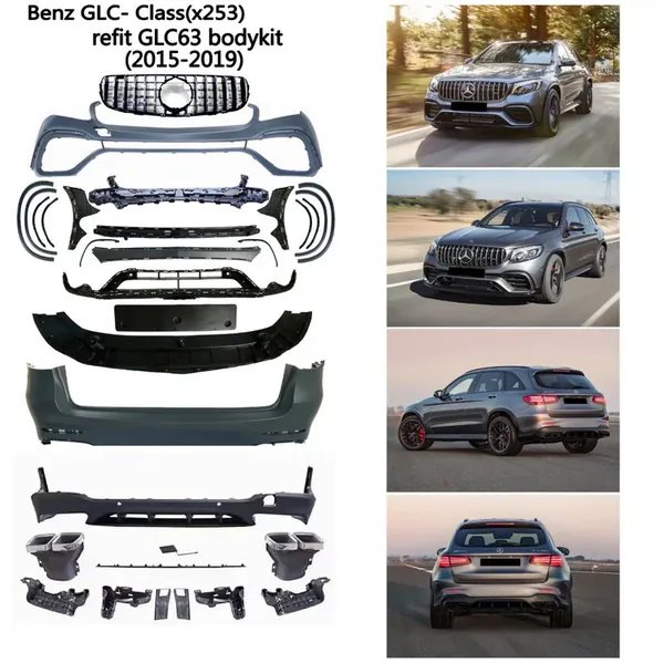COMPATIBLE WITH MERCEDES BENZ GLC W253 X253 2016-2020 CAR UPGRADE TO GLC63 AMG BUMPER BODYKIT FRONT AFTER LIP DIFFUSER EXHAUST TIPS FOG GRIL COVER