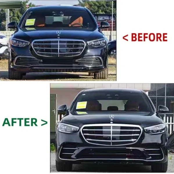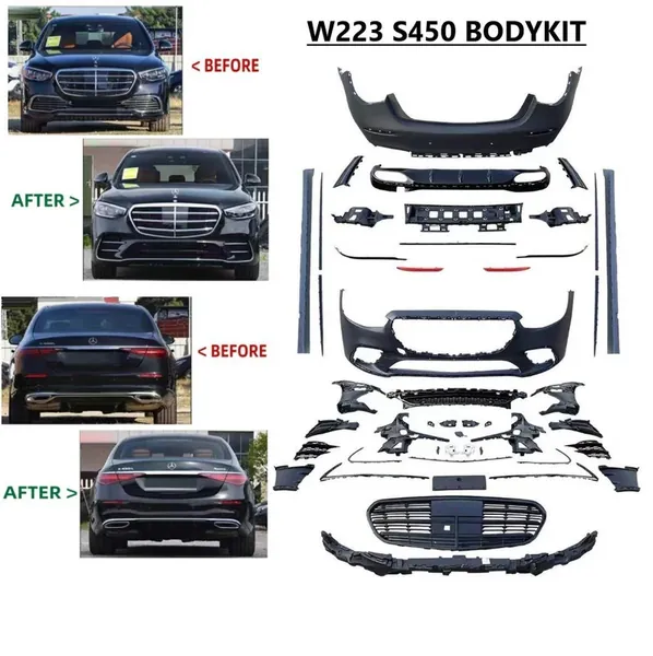 COMPATIBLE WITH MERCEDES BENZ S CLASS W223 2021-2025 CAR UPGRADE TO S450 AMG BUMPER BODYKIT FRONT AFTER LIP DIFFUSER EXHAUST TIPS FOG GRIL COVER GRILL