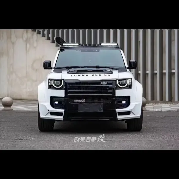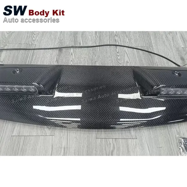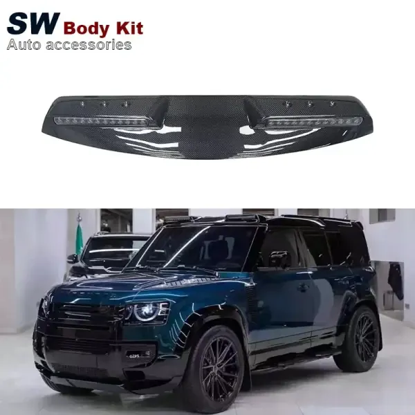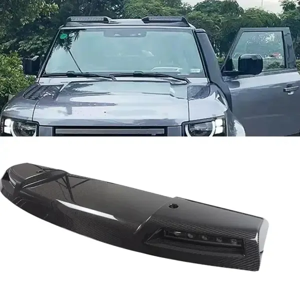 Carbon Fiber Look Front Roof Spoiler with Dome Light Bar DRL LED Daytime Running Lamp Light Compatible With Land Rover Defender 90 110 2020-2024