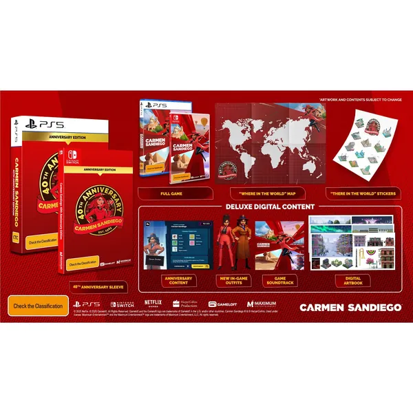 Celebrate 40 years of Carmen Sandiego with the 40th Anniversary Edition, crafted for devoted fans and new sleuths alike! Greet some familiar faces in the exclusive anniversary caper and become a master of disguise with some exclusive in-game outfits.