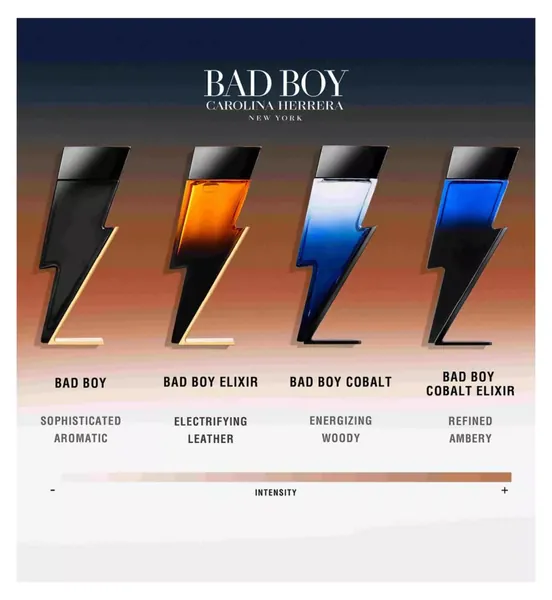 BAD BOY Elixir is the most electrifying and luxurious interpretation of Bad Boy yet, presented in a rich brown lightning bolt bottle that pays tribute to the House of Herrera's premium leather craftsmanship. A warm and sophisticated blend of aromatic sage, refined leather and cedarwood, this powerful elixir evokes the smoldering heat that comes after a tumultuous storm.