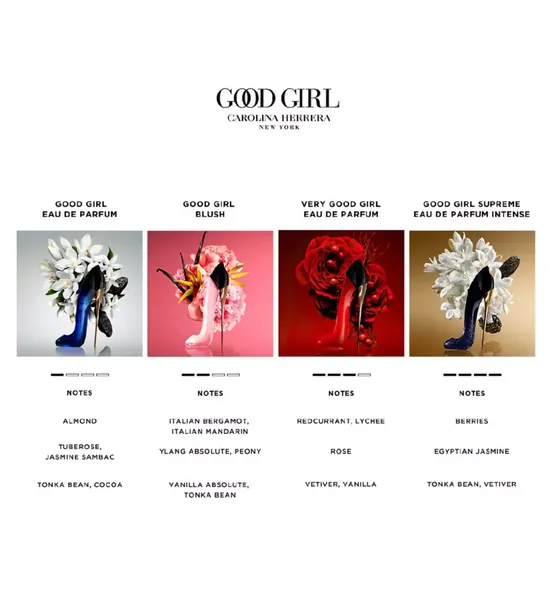 Housed in a blush-pink stiletto, this radiant re-invention of the iconic Good Girl scent reveals the multifaceted nature of modern womanhood with a double dose of Vanilla and the pastel romanticism of Peony - evoked with two forms of Ylang Ylang and upcycled rosewater.