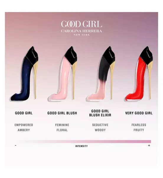 Very Good Girl Eau de Parfum by Carolina Herrera takes you on a surprising olfactive journey, starting with top notes of playfully mischievous redcurrant and exotic lychee, leading to a seductive heart of rose. Vetiver and vanilla base notes provide a surprising and contemporary finish.
