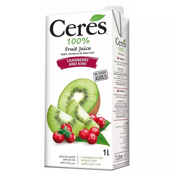 Exquisite Fusion: Ceres Cranberry and Kiwi Fruit Juice offers a unique and delightful fusion of tart cranberries and tropical kiwis, creating a harmonious blend of flavors that tantalize your taste buds.