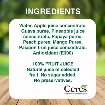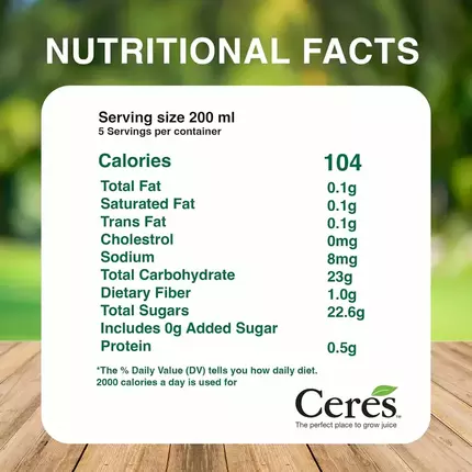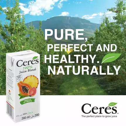 Ceres is the best 100% pure fruit juice you can buy - wholesome, earthy and natural, with no added cane sugar, colorants or preservatives - the pure goodness of nature from the valley of Ceres. It's filled with all the vitamins and minerals found in fresh fruit. It contains minimum sodium (salt), so it's perfect for people suffering from high blood pressure or cholesterol problems. While most popular kids' juices and drinks contain harmful additives, Ceres is 100% pure and healthy.
