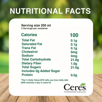 Ceres is the best 100% pure fruit juice you can buy - wholesome, earthy and natural, with no added cane sugar, colorants or preservatives - the pure goodness of nature from the valley of Ceres. It's filled with all the vitamins and minerals found in fresh fruit. It contains minimum sodium (salt), so it's perfect for people suffering from high blood pressure or cholesterol problems. While most popular kids' juices and drinks contain harmful additives, Ceres is 100% pure and healthy.Research has shown that some nutrients in 100% pure fruit juices like Ceres may help reduce the risk of cancer and heart disease.
