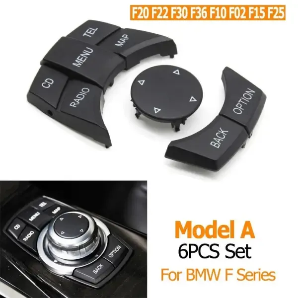 COMPATIBLE WITH BMW 1 SERIES F20 F21 2012-2018 2 SERIES F22 F23 F87 2009-2017 3 SERIES F30 F31 F34 F35 2012-2019 4 SERIES F32 F33 F36 F82 F83 2011-2020 5 SERIES F10 F07 F18 2010-2017 6 SERIES F06 F12 F13 2012-2019 7 SERIES F01 F02 F04 2009-2016 X3 F25 2011-2017 X4 F26 2013-2018 X5 F15 2014-2018 X6 F16 2015-2018 CIC IDRIVE MULTIMEDIA MOUSE KEYS MENU KNOB BUTTON COVER