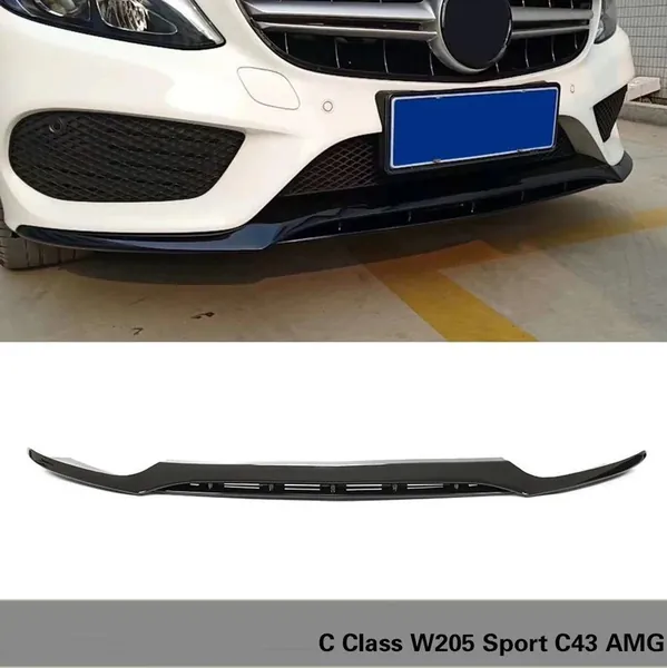 Classic Standard Front Bumper Lip Splitter Skirts Glossy Black GC CC-9517 Compatible With Mercedes Benz C Class W205 C205 Coupe 2015-2021