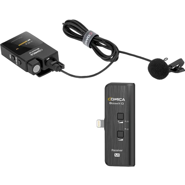 Designed for mobile journalists, videographers, and vloggers, the Comica BoomX-D MI1 is an ultracompact, true wireless digital microphone system with one microphone and a dual-channel receiver that can also be used to receive a second microphone (available separately). It offers a complete solution for recording dialogue, interviews, and speech with one person talking—directly to an iOS smartphone or tablet.