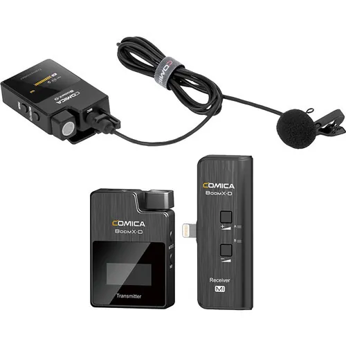 Designed for mobile journalists, videographers, and vloggers, the Comica BoomX-D MI2 is an ultracompact, true wireless digital microphone system with two microphones and just one receiver. It offers a complete solution for recording dialogue, interviews, and speech with two people talking simultaneously—directly to an iOS smartphone or tablet.