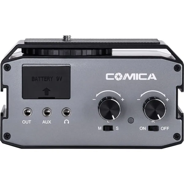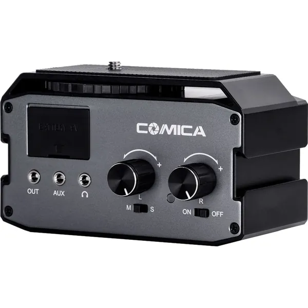Record microphones, instruments, or line-level signals into your DSLR with the Comica Audio CVM-AX3, a dual-channel mixer designed for use in video production, ENG, music videos, and more. Mount it to a camera or tripod then attach important accessories to its integrated cold shoe mounts. Dual gain control knobs adjust levels for the two built-in preamps, which can be fed by the XLR-1/4" combo jacks or 3.5mm mini-jack inputs. With selectable 48V phantom power and 3V plug-in power, the CVM-AX3 ensures compatibility with a variety of microphones such as traditional condensers, shotguns, and lavaliers.