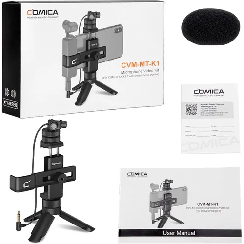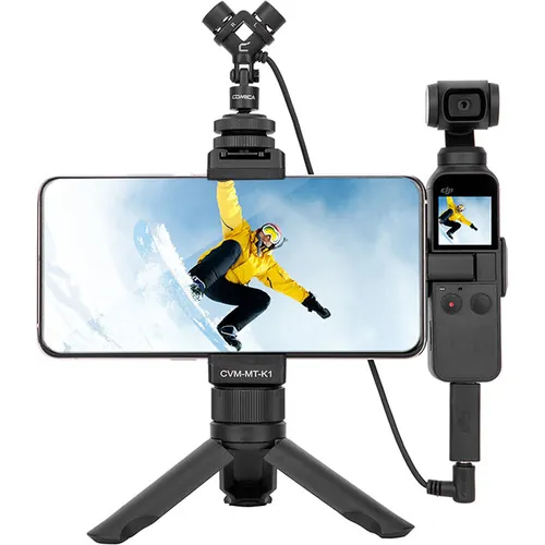 The Comica CVM-MT-K1 aims at taking video-making on your DJI Osmo Pocket camera to the next level. This kit includes a camera-mount stereo microphone and a phone clamp with a mini tripod for holding a smartphone when used to monitor your videos. It is ideal for mobile journalists, vloggers, and run-and-gun shooters.