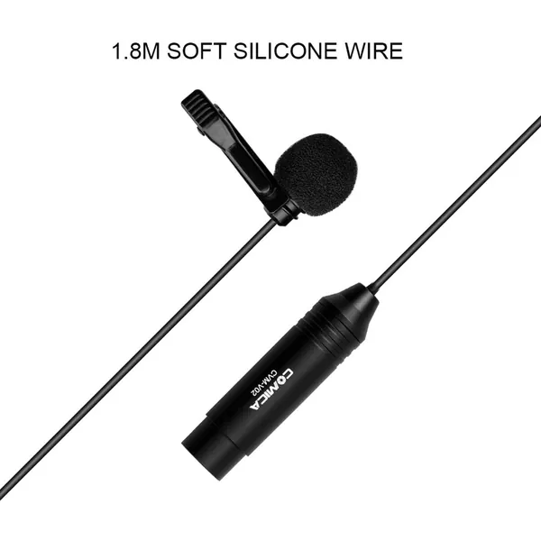 The Comica Audio CVM-V02C is a cardioid lavalier microphone with an XLR connector designed to plug into an XLR-equipped camera, recorder, or mixer. The mic discretely clips onto your clothing to capture clear speech and dialog for YouTube videos, mobile journalism, podcasts, and more.