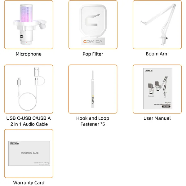 Comica Audio EJoy Uni A RGB Cardioid Condenser USB-C Microphone with Boom Arm (White)
