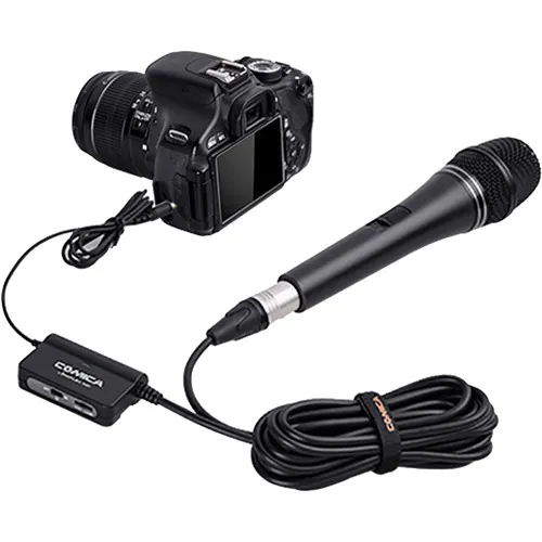 Connect the LinkFlex AD1's balanced 3-pin XLR jack to a microphone that doesn't require phantom power (such as a dynamic mic or a battery-powered condenser), hook the control unit to your belt, then connect its 3.5mm TRRS jack to your mobile device or camera. Thanks to the control unit's 3.5mm headphone output, real-time monitoring is as simple as plugging in a set of headphones. With over 16' of cable between the XLR jack and your smartphone/DSLR, you can maintain proper shooting distance without extension cables.